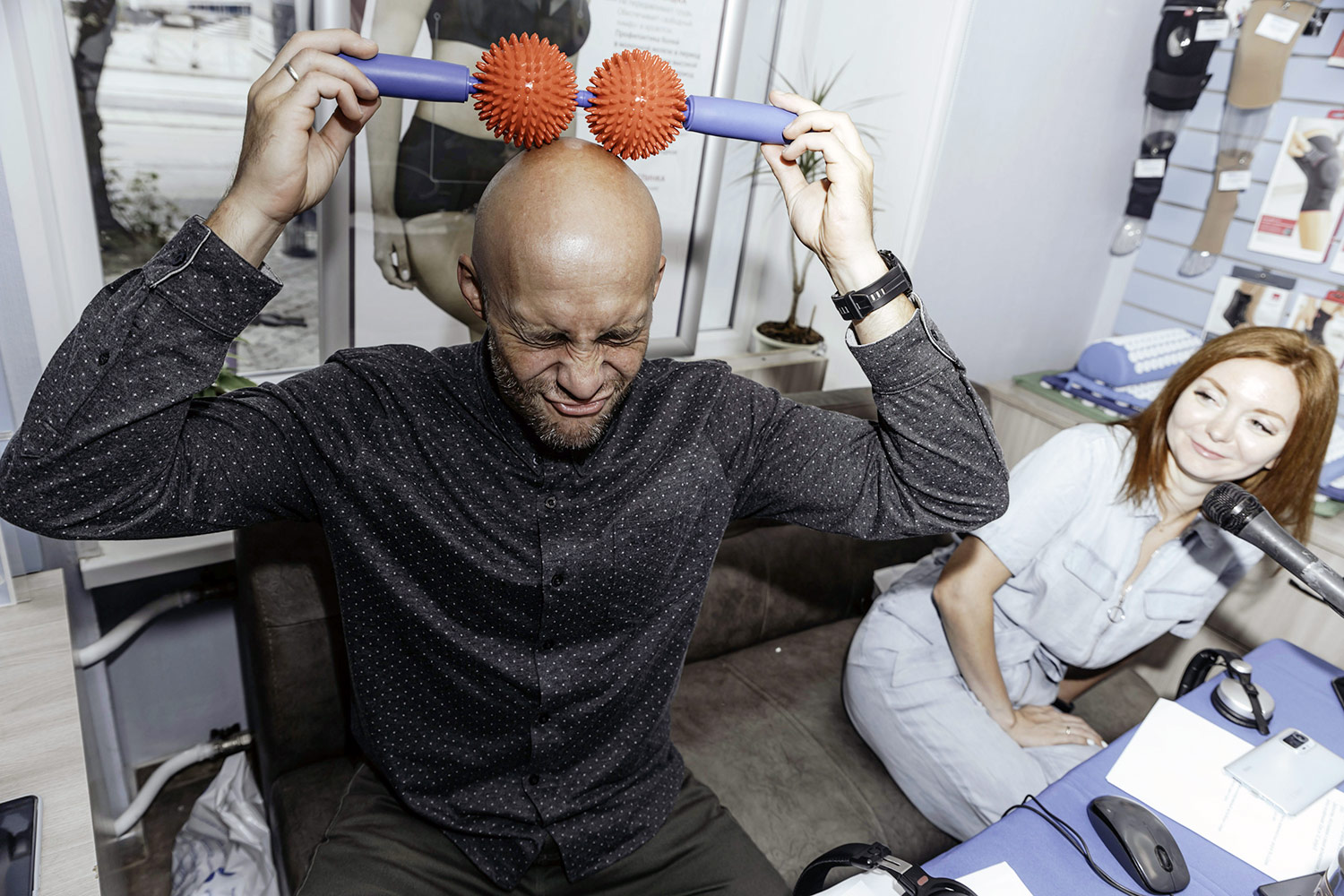 Ведущие проверяли здоровье своих стоп, практиковались в самомассаже с использованием наших массажеров, пробовали.