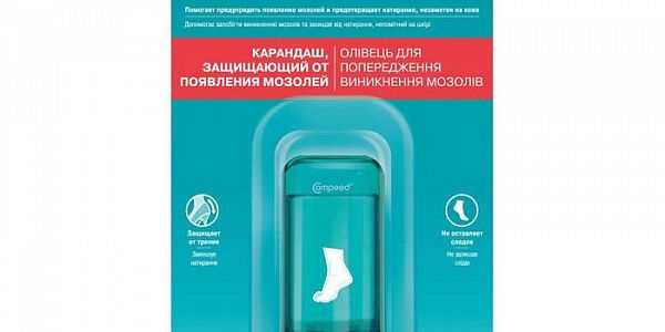 Карандаш Compeed защищает от появления мозолей благодаря натуральной увлажняющей формуле: