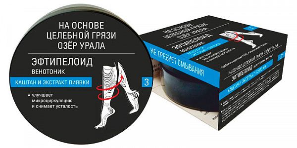 Крем-маска Эфтипелоид для ног Каштан и Экстракт пиявки 150 мл ЭФТИПЕЛОИД Описание Действие крем-маски обусловлено активными компонентами, входящими в ее состав.Активные компоненты крем-маски устраняют отечность, напряжение мышц и чувство усталости в ногах.Экстракт конского каштана стабилизирует стенки сосудов, повышает тонус вен, улучшает микроциркуляцию, устраняет напряжение мышц и чувство усталости в ногах.Экстракт пиявки уменьшает свертываемость крови, что способствует снижению риска развития тромбофлебита. Укрепляет и восстанавливает внутреннюю поверхность стенок вен, устраняет сосудистые и мышечные спазмы, способствует образованию новых капилляров, в результате чего улучшается микроциркуляция крови и разгружается венозная система.По согласованию с лечащим врачом крем-маску можно применять в комплексной терапии варикозного расширения вен нижних конечностей. Способ применения Легкими массажными движениями наносить тонкий слой крем-маски на чистую и сухую кожу ног 1-2 раза в сутки. Средство хорошо впитывается в кожу и не требует смывания, при необходимости излишки крем-маски удалить влажной салфеткой. Рекомендуем (по желанию и возможности) после нанесения крем-маски на проблемную область обеспечить тепло и покой в течение 30 минут. Под тепловым воздействием кожные поры расширяются, и полезные вещества крем-маски быстрее проникают вглубь кожи, где начинают активно работать. Крем-маску рекомендуется применять курсами, с перерывом между ними 1-2 недели. Один курс применения составляет в среднем 2-3 недели. Состав Вода, интрадерм, минеральное масло, цетилстеарировый спирт, глицерил, моностеарат, цетилпальмитат, пелоид, экстракты: каштана конского, пиявки и ромашки, масла: миндаля и чайного дерева, экстрапон (витамины А, В, Е и Н, арника, гамамелис), солбролы: Р, М. mag /upload/iblock/4b2/4b2719b86200c5424658765ba59d0412.jpg