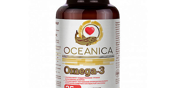 ОписаниеКомплекс полиненасыщенных жирных кислот Омега-3 способствует нормализации сердечной деятельности, липидного обмена, снижает риск развития сердечно-сосудистых заболеваний. Способствует поддержанию уровня холестерина в норме, улучшению функционального состояния сердечно-сосудистой системы.ПоказанияИммуностимуляцияНормализация сердечной функцииУкрепление функций организмаПротивопоказанияИндивидуальная непереносимость компонентов БАД. Перед применением рекомендуется проконсультироваться с врачом. Беременным и кормящим принимать по согласованию и под наблюдением врача. Перед применением БАД детьми необходимо проконсультироваться с врачом-педиатром. Детям до 14 лет принимать БАД по согласованию и под наблюдением врача-педиатра. Область примененияВ качестве дополнительного источника полиненасыщенных жирных кислот омега-3, в том числе эйкозапентаеновой, докозагексаеновой кислот.СоставЖир рыб океанических пород, оболочка капсулы: желатин пищевой (носитель), глицерин (влагоудерживающий агент), лимонная кислота (регулятор кислотности), смесь токоферолов (антиокислитель).Способ примененияДетям старше 11 лет и взрослым, в том числе женщинам, планирующим беременность, беременным и кормящим грудью принимать по 1 капсуле 2 раза в день во время или после еды.Срок годности: 2 года.Продолжительность приема: 1 месяц. Возможны повторные приемы в течение года. Пищевая ценность на 100г продукта: жиры – 71 г (из них ПНЖК Омега-3 – 25 г), белки – 14 г. Энергетическая ценность на 100г продукта: 2870 кДж/696 Ккал.Не является лекарственным средством.