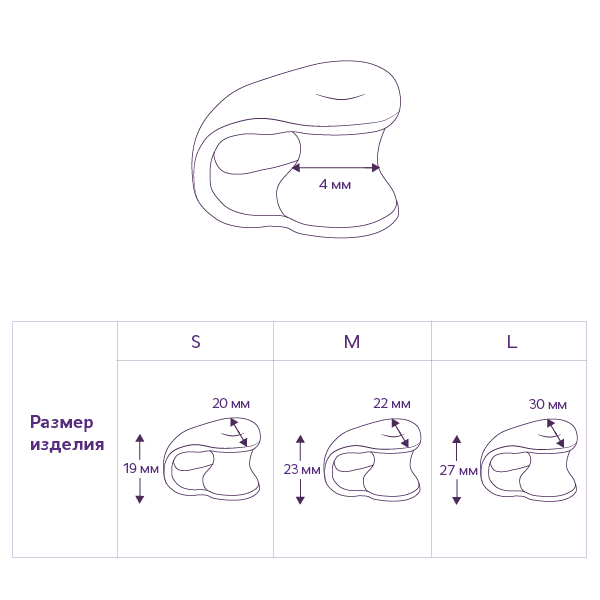 - 3 размера позволяют использовать перегородку в любом межпальцевом промежутке