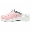 Женские анатомические сабо Fratelli D-06 - легкая и очень удобная модель светло-розового цвета для повседневного ношения и долгих прогулок в теплое время года, подходящая в том числе людям, которые много времени проводят на ногах (медики, продавцы, повара и т.п.). Застежка позволяет отрегулировать обувь по подъему и полноте, а перфорация по верху изделия обеспечивает отличный тепло- и влагообмен.